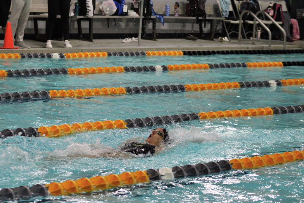 Hayden Johnson competes in the backstroke against Moline. Johnson finished first in the event, with Streaks teammate Camdyn Miller placing second.