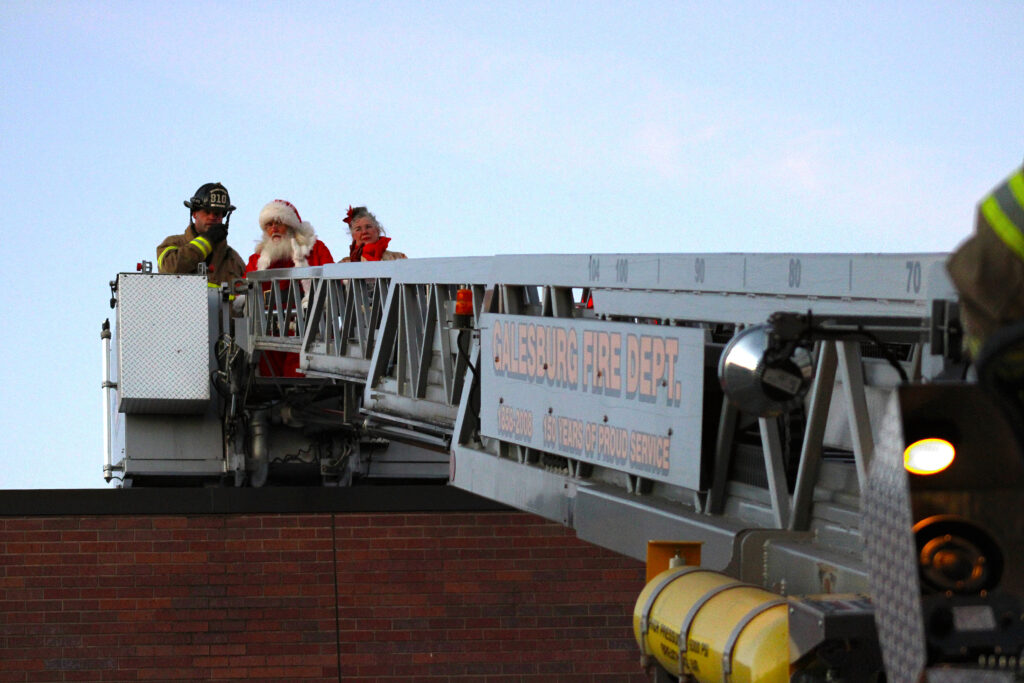 The evening began with the traditional Santa Rescue at 4:30 p.m. atop First Mid Bank & Trust. Santa and Mrs. Claus later joined the parade following the rescue, which rolled out at 5 p.m. The route ran from South Chambers and Main streets west to the Knox County Courthouse.