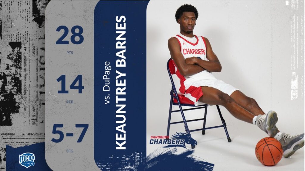 Barnes powered the Chargers past visiting DuPage on Dec. 19, going 5 of 7 from 3-point range. His five 3-pointers and 14 rebounds were also season highs.