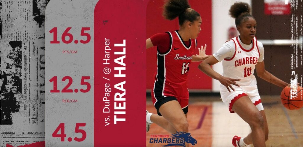 Tiera Hall posted a season-high 18 points and a team-best 15 rebounds to lead the Chargers to a home win over DuPage.