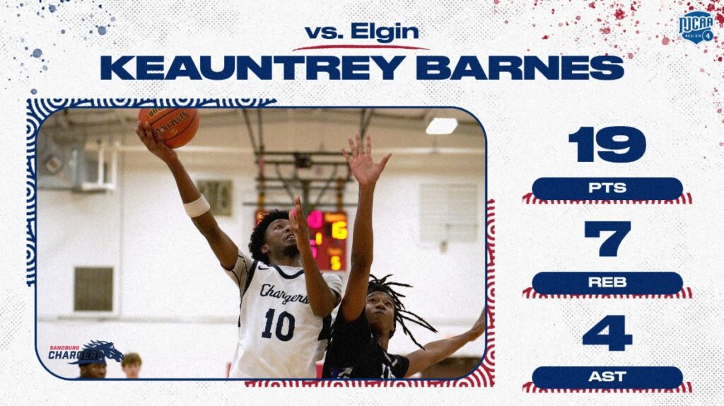Sophomore Keauntrey Barnes led Sandburg with 19 points as the Chargers shot 50% (27 of 54) from the field. Barnes finished 6 of 14 shooting and added seven rebounds, four assists and two steals.