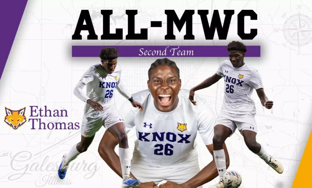 The Midwest Conference released its all-conference teams in men’s soccer, with Knox College defender Ethan Thomas earning a spot on the second team.