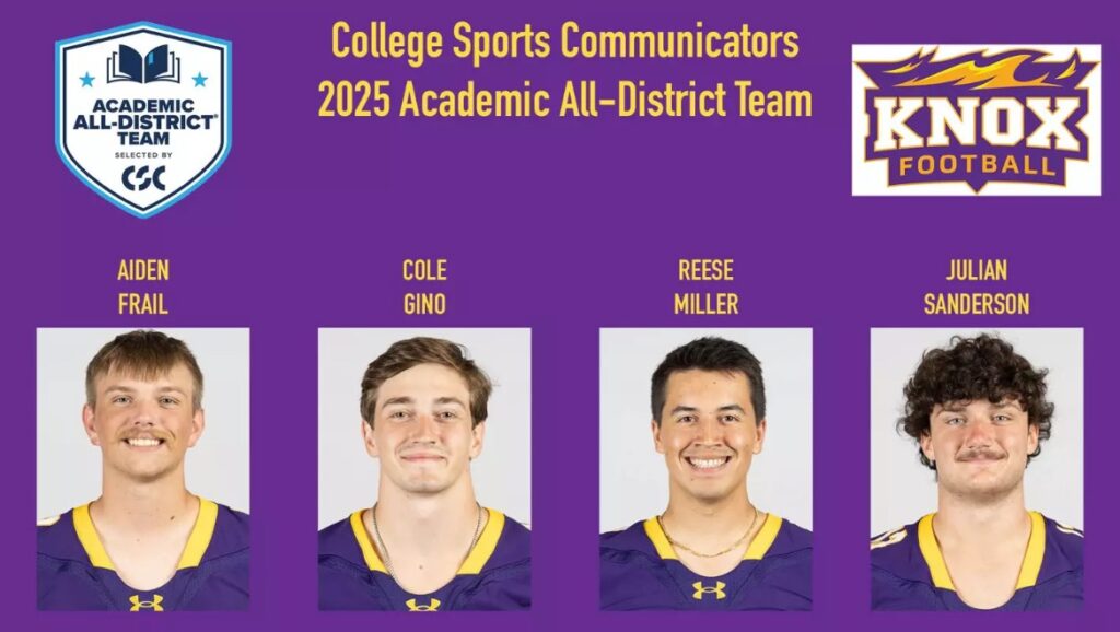 Four Knox College football players earned College Sports Communicators Academic All-District honors for NCAA Division III, the organization announced Tuesday.