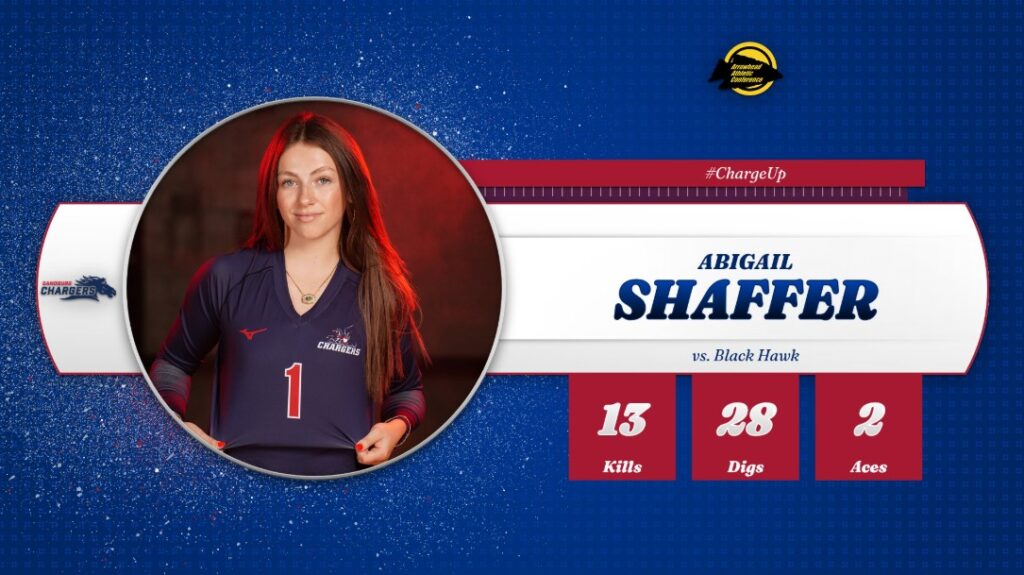 Shaffer was one of three Chargers (15-22 overall, 7-3 Arrowhead Conference) to reach double figures in kills. Harlee Hainds had 11 kills and three blocks, while Jalie Eller added 10 kills to close the regular season.