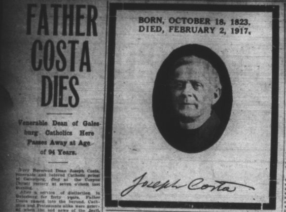 On Oct. 6, 1887, the Rev. Father Joseph Costa stepped off a train in Galesburg, returning from a three-month trip to Italy, the land of his birth and the heart of the Catholic Church. He was weeks away from turning 64 and had been serving the Galesburg community since 1877.