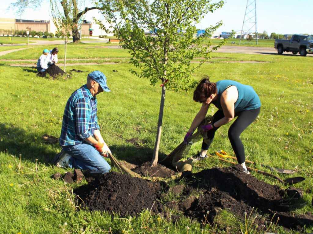 Volunteers gathered Saturday, April 25, at the Dale May Fire Training Center before planting trees at Jason Wessels Park, Voyles Field, Optimist Park and along Veterans Drive. Trees planted included chinkapin oaks, crabapples, yellowwoods, lilacs, Robin Hill serviceberries and maples.